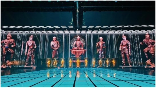 舞美奇觀:運(yùn)用前沿?cái)?shù)字技術(shù),結(jié)合精妙的舞臺設(shè)計(jì)和燈光效果,在舞臺上立體還原敦煌洞窟的恢弘與壁畫的精妙,營造如夢似幻的沉浸式觀演體驗(yàn)。