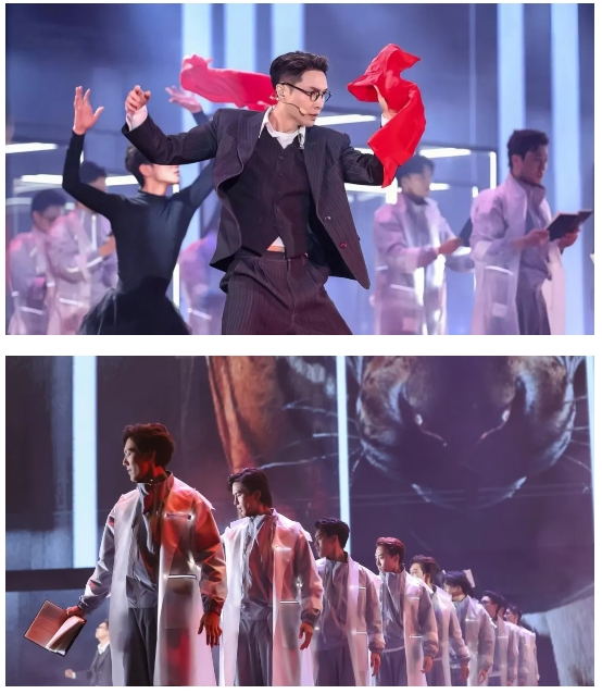 該劇最大的亮點(diǎn)在于創(chuàng)新性藝術(shù)融合,將非遺、科技、禪意、潮流、AI融入先鋒音樂話劇,打破傳統(tǒng)觀演模式和傳統(tǒng)舞臺結(jié)構(gòu),巧妙植入演唱會、音樂劇、話劇、舞劇甚至是電影多種藝術(shù)表現(xiàn)形式,通過人工智能、影視化、動畫真人融合等最新科技賦能舞臺,實(shí)現(xiàn)“戲劇+影視+Live”多種藝術(shù)場域的融合,“創(chuàng)造”了既現(xiàn)代又滿載中國審美的“敦煌”空間,讓觀眾沉浸體驗(yàn)敦煌文化的輝煌與魅力。