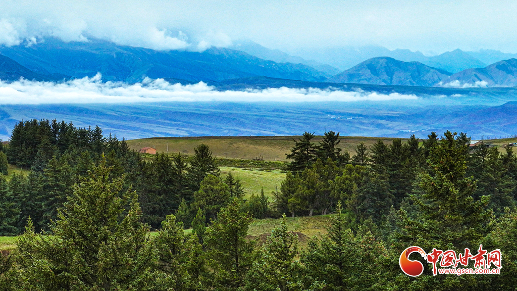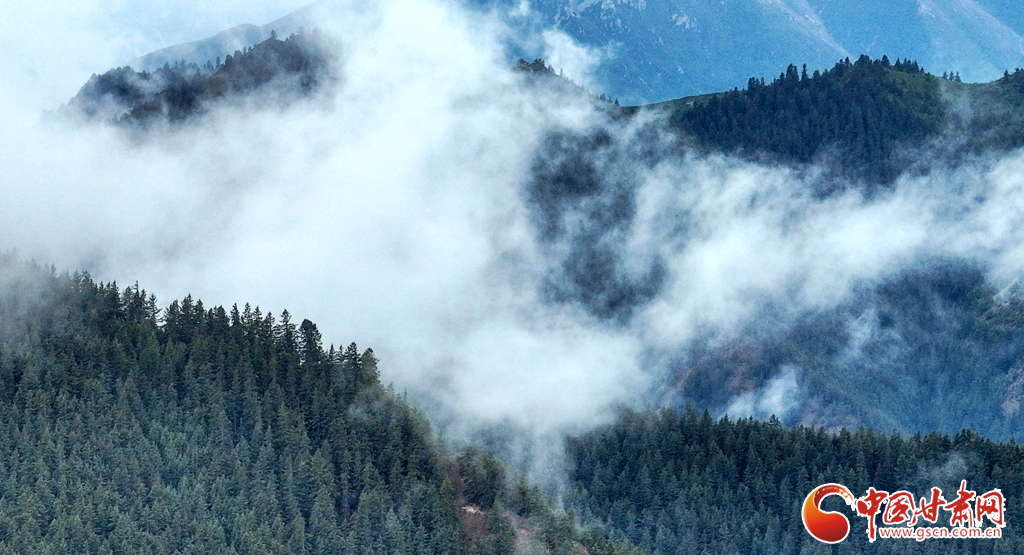 6月21日清晨,位于張掖市肅南裕固族自治縣境內的祁連山國家公園,細雨初歇。云海如傾瀉的瀑布,在峰巒間翻涌,座座山峰時隱時現(xiàn)。朦朧的雪山與蒼松翠柏的原始森林、一望無際的碧綠草原,共同鋪展成這幅雨后的人間絕美畫卷。