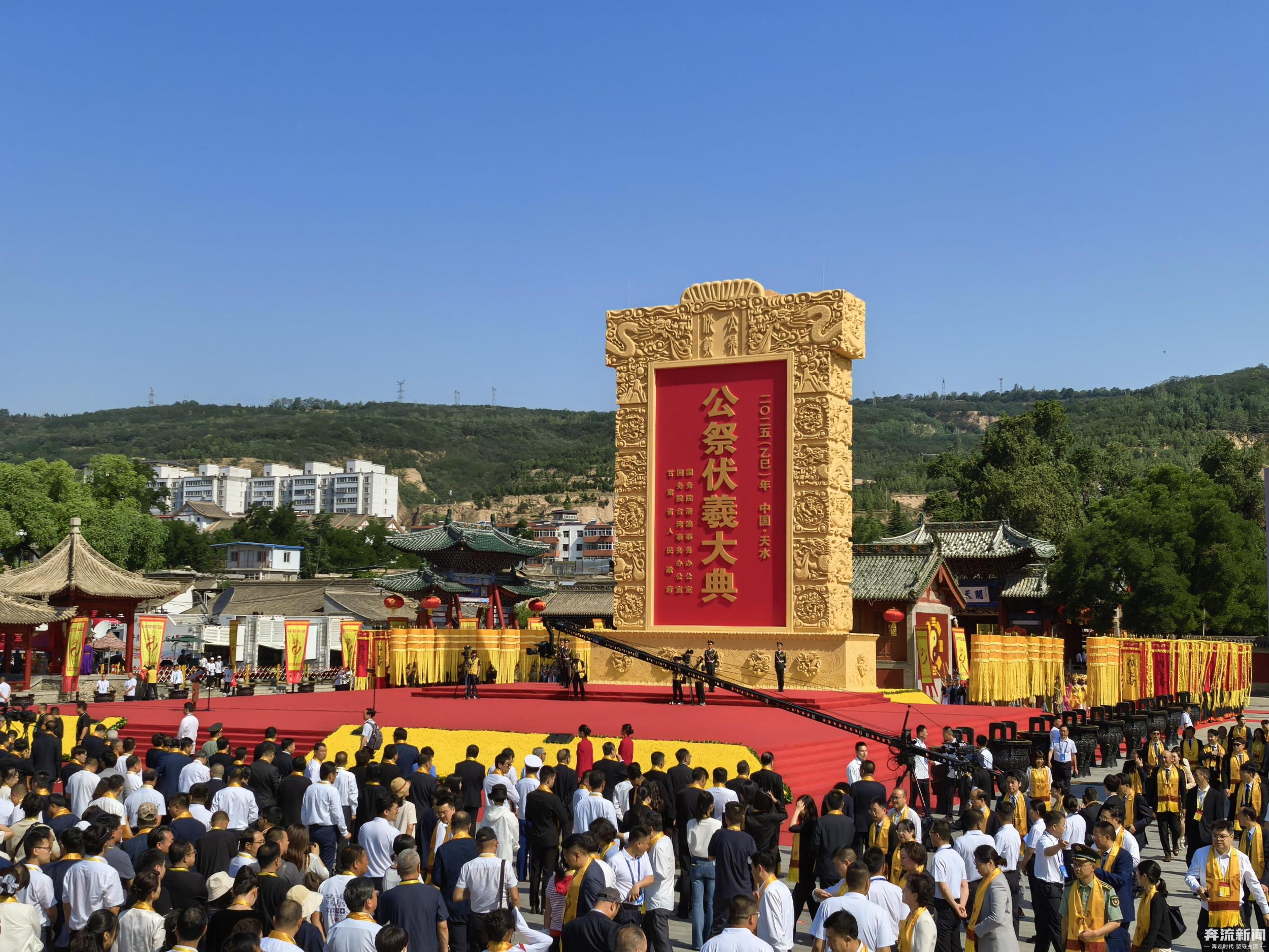 6月21日,夏至,甘肅天水,整座城沉浸在莊重而神圣的氛圍中。當(dāng)日,2025(乙巳)年公祭中華人文始祖伏羲大典在天水伏羲廟盛大舉行。人們從四面八方匯聚于此,共赴這場跨越千年的文化之約,向人文始祖伏羲致以最崇高的敬意。與此同時(shí),寶島臺灣也同步舉行海峽兩岸共祭中華人文始祖伏羲典禮。