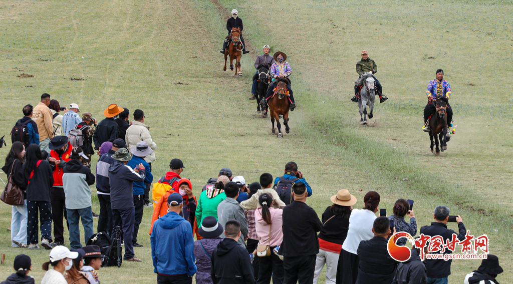 當(dāng)日,肅南裕固族自治縣“相約康樂草原 體驗(yàn)民族風(fēng)情”傳統(tǒng)文化展演活動(dòng)拉開帷幕,來自肅南縣3個(gè)鄉(xiāng)鎮(zhèn)22個(gè)村的160多名騎手,自發(fā)匯聚于此,展開大馬賽、小馬賽、圓口賽、對牙賽等精彩賽事,將草原的速度與激情演繹得淋漓盡致,吸引了上海、廣東、安徽、福建等地的萬名游客觀賞賽馬和領(lǐng)略雪山、森林、草原為一體的祁連山美麗景色。