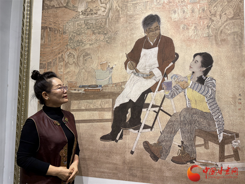 王亞林說,她這幅畫里的學(xué)生是按照自己來畫的,在敦煌壁畫的世界里,每個人都是虔誠的學(xué)習(xí)者。