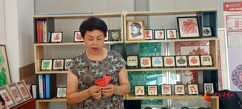 蘭州職業(yè)技術(shù)學(xué)院非物質(zhì)文化遺產(chǎn)學(xué)院剪紙工作室,史婷老師正在教同學(xué)們剪紙。“咔嚓、咔嚓……”的剪紙聲如美妙的音符,那樣熟悉,又那樣動(dòng)聽(tīng)。
