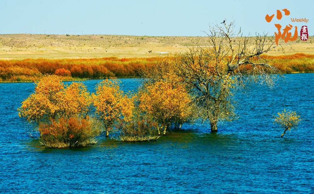 天藍(lán)藍(lán),水藍(lán)藍(lán),水天一色。紅柳簇?fù)沓裳妫紵谒醒?,顯得格外奪目,展現(xiàn)出荒漠特有的壯美與生機(jī)。