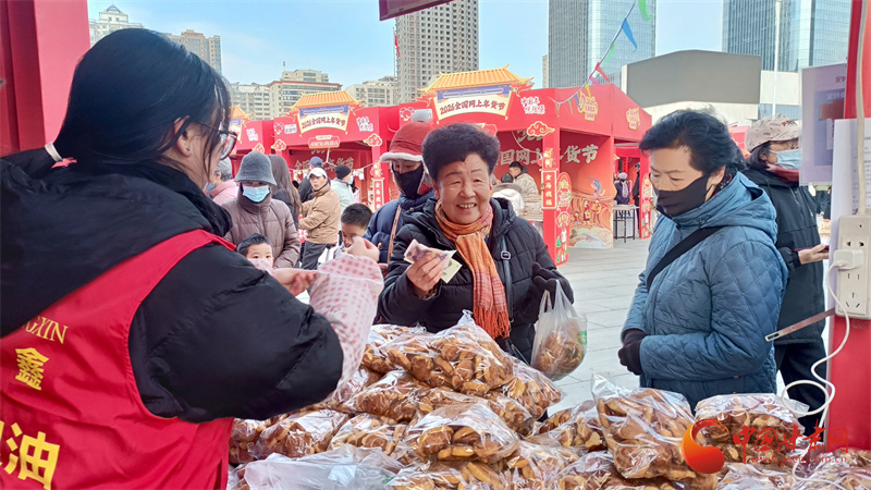 作為年貨節(jié)的核心主場,東方紅廣場的8000平方米年貨市集早已人頭攢動、熱鬧非凡。130多個展位整齊排列,200多家參展企業(yè)帶來十萬余件商品,甘味特產、非遺文創(chuàng)、隴酒佳釀、中華“老字號”等十大板塊琳瑯滿目,讓人目不暇接。