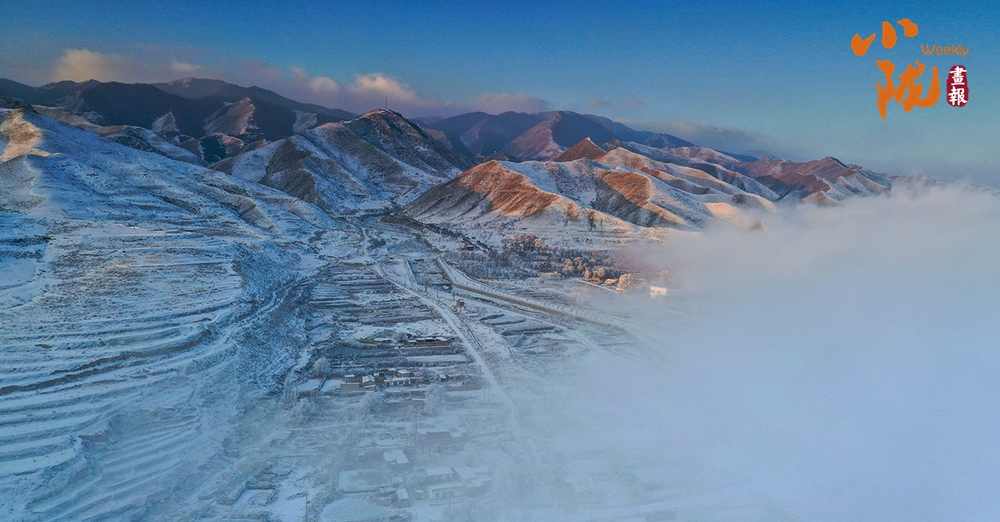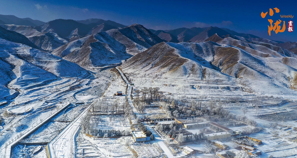 山下的屋舍靜臥于無邊的潔白中,淺藍(lán)天色漸次暈染,蒼灰山脊如墨筆勾勒,山川草木皆成了畫中疏淡的筆意,低訴著悠長(zhǎng)的冬韻。