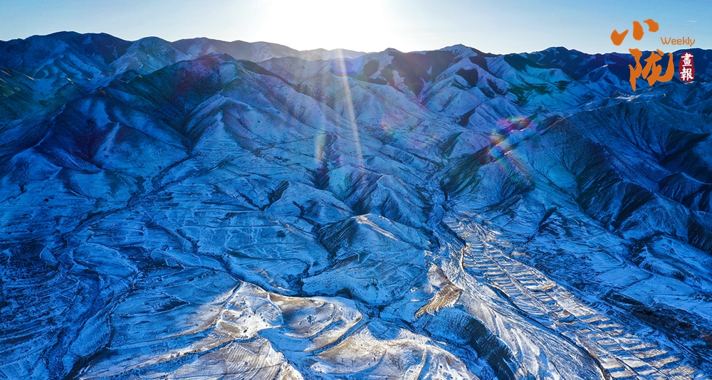 斜暉輕灑,為山川的起伏輪廓描上清晰的邊線,溝壑間積雪未消,褶皺處陰影濃淡相宜,宛如一幅墨色清潤(rùn)、筆意蕭疏的雪景圖。