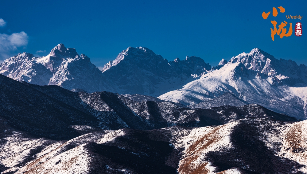 馬牙雪峰披著一身無瑕的純白,靜立于層疊起伏的山谷之間。高處是皚皚雪冠,低處是深谷幽影,這一高一低,一遠(yuǎn)一靜,在視覺與意境上形成了完美的平衡。