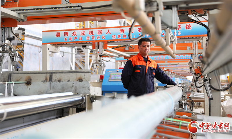 2月25日,在民樂工業(yè)園區(qū)內(nèi)一地膜生產(chǎn)車間,工人們正加足馬力生產(chǎn)地膜,助力春耕春播。