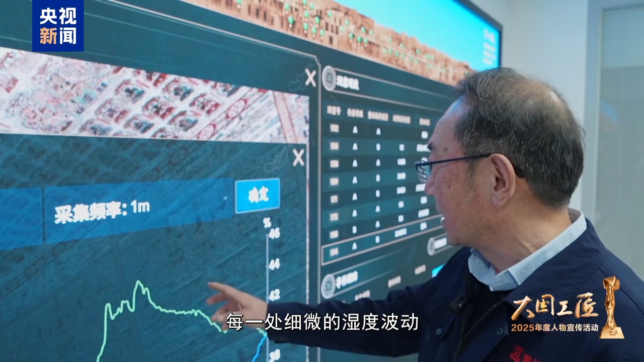 每一處細(xì)微的濕度波動(dòng)都會(huì)給壁畫帶來影響,樊再軒仔細(xì)觀察著石窟監(jiān)測(cè)系統(tǒng)上的數(shù)據(jù),隨后又帶領(lǐng)團(tuán)隊(duì)進(jìn)入洞窟,對(duì)壁畫進(jìn)行復(fù)查。
