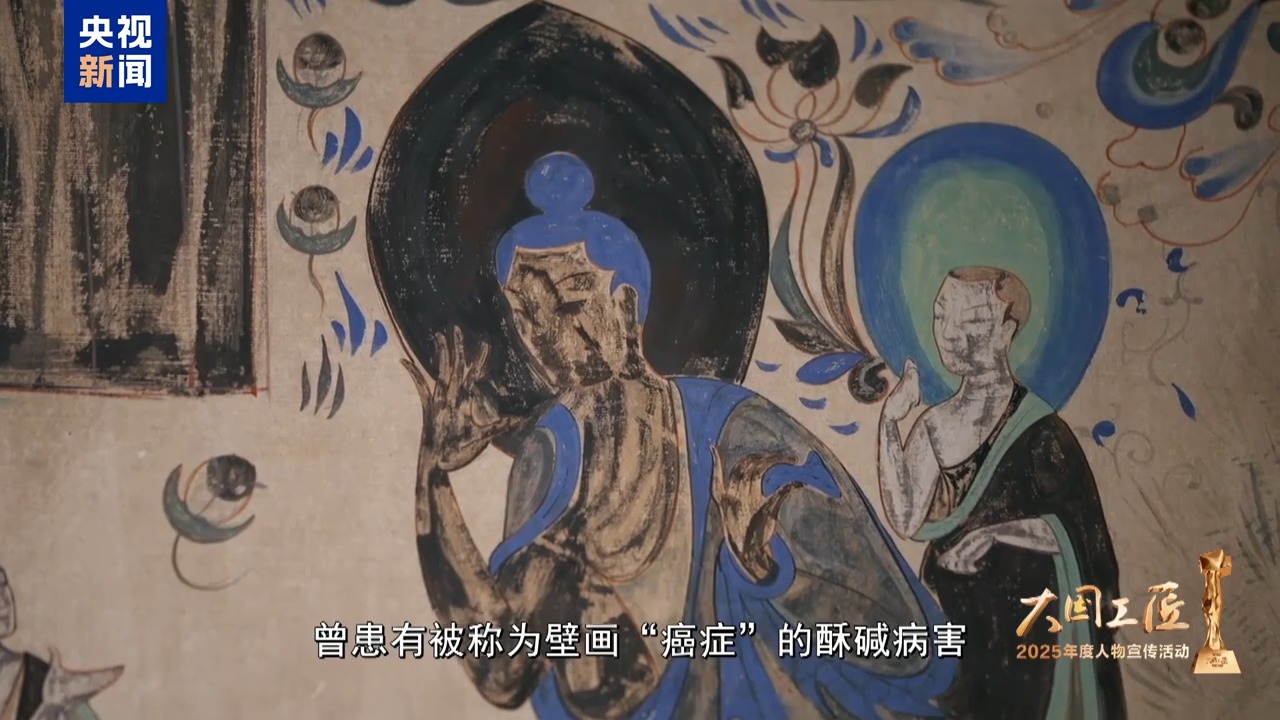 2025年大國工匠年度人物、敦煌研究院壁畫保護(hù)修復(fù)專家 樊再軒:這里,是我守護(hù)一生的地方——敦煌莫高窟,它是大漠深處矗立千年的文明圣殿。45年前,我開始修復(fù)敦煌壁畫,總感覺是在和古代的畫工們進(jìn)行著跨越時(shí)空的交流。這些壁畫,它是會(huì)呼吸的,它是有生命的。然而,壁畫當(dāng)中潛藏著很多的可溶鹽,在洞窟里受到溫濕度的影響,反復(fù)地潮解、結(jié)晶,導(dǎo)致壁畫膨脹、收縮。就像一雙雙無形的手,在一點(diǎn)一點(diǎn)撕裂著壁畫的肌膚,這就是壁畫“癌癥”。我暗下決心:要讓這千年瑰寶在時(shí)光的長(zhǎng)河里留存得久一點(diǎn),更久一點(diǎn)。