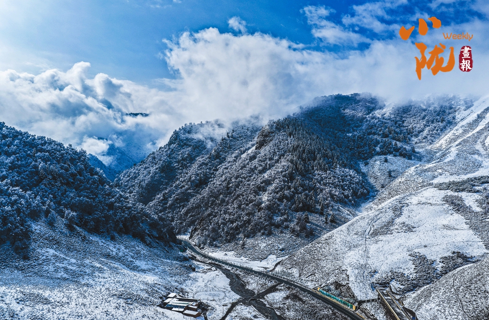 從高空俯瞰,烏鞘嶺的山脊線在雪中若隱若現(xiàn),一側(cè)云海翻騰,一側(cè)晴空萬(wàn)里,形成鮮明的“一山分兩景”的奇觀。