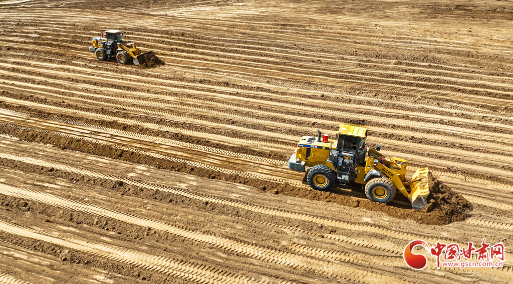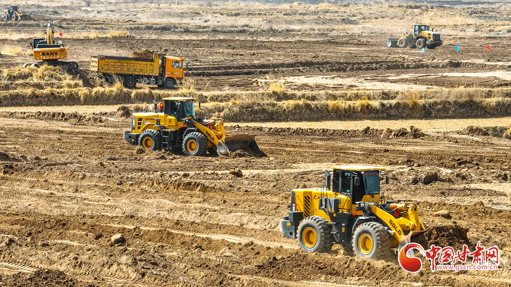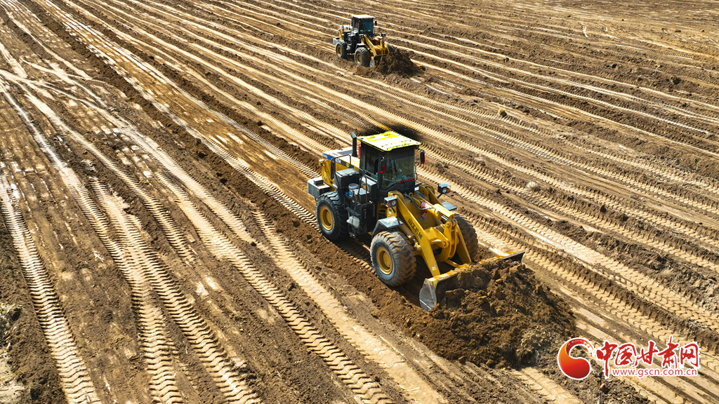 3月20日,在張掖市民樂縣新天鎮(zhèn)李寨村高標(biāo)準(zhǔn)農(nóng)田建設(shè)現(xiàn)場,推土機、平地機在田野間往來穿梭,將高低不平、細(xì)碎零散的“小塊田”逐步整合為連片“大田”。