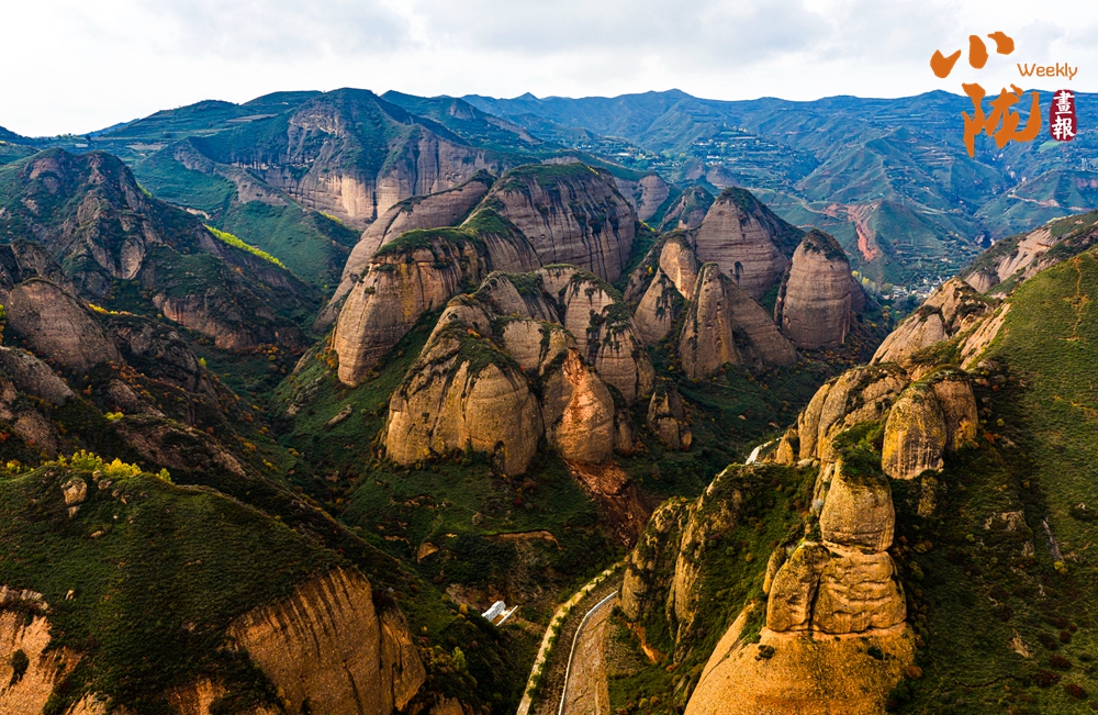 遠(yuǎn)遠(yuǎn)望去,山谷間、山巖上,一簇簇、一片片墨綠色草叢,將丹霞的紅、初冬的彩、山體的褐輕輕暈染,構(gòu)成一幅美麗的冬日美景。